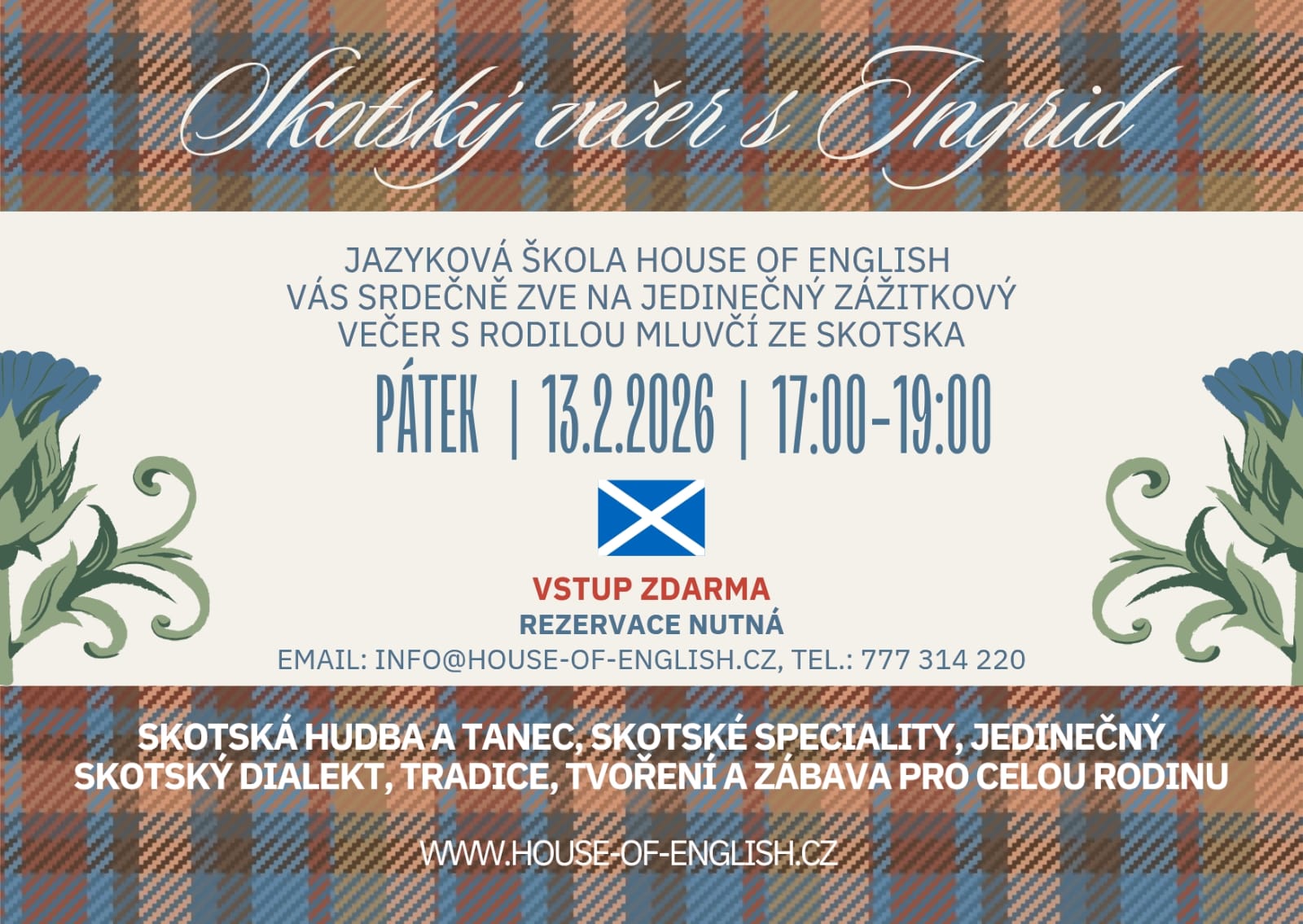 Zážitkový večer plný skotské kultury s rodilou mluvčí.